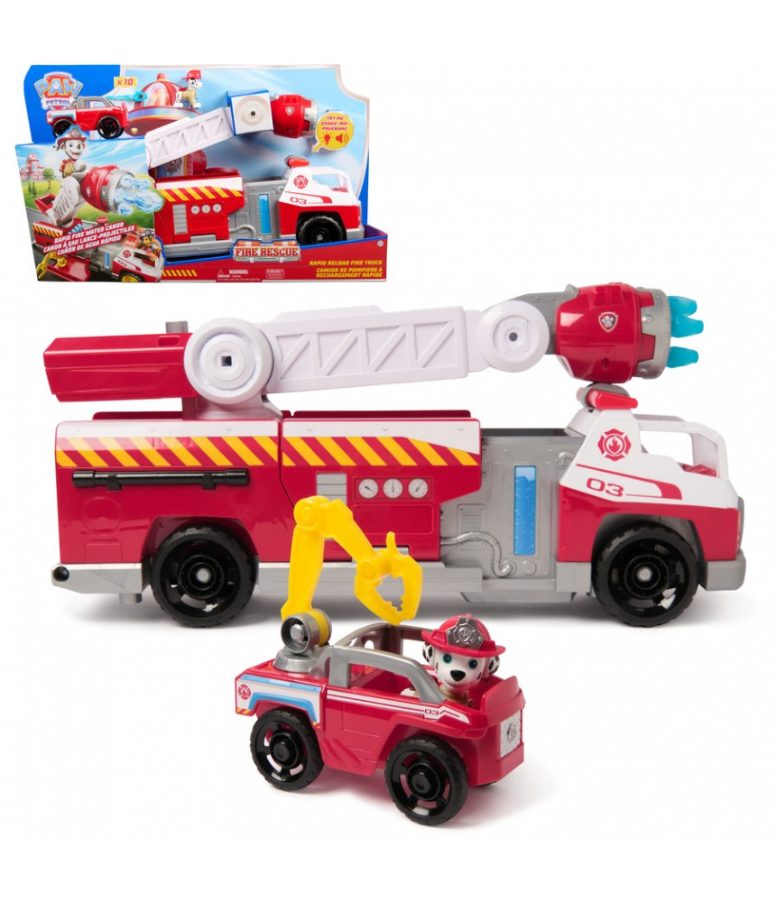 S dĺžkou 50 cm a výškou cez 22 cm je obrovské a má v sebe množstvo vzrušujúcich herných funkcií, plus svetelné a zvukové efekty. Vozidlo má pohyblivý záchranný rebrík, záchranné rameno a zhadzovač projektilov s funkciou rýchleho hasenia. Do zhadzovača je možné vložiť 5 vodných projektilov a vystreliť ich stlačením tlačidla. Funkcia rýchleho nabíjania okamžite poskytne ďalších 5 projektilov na hasenie.