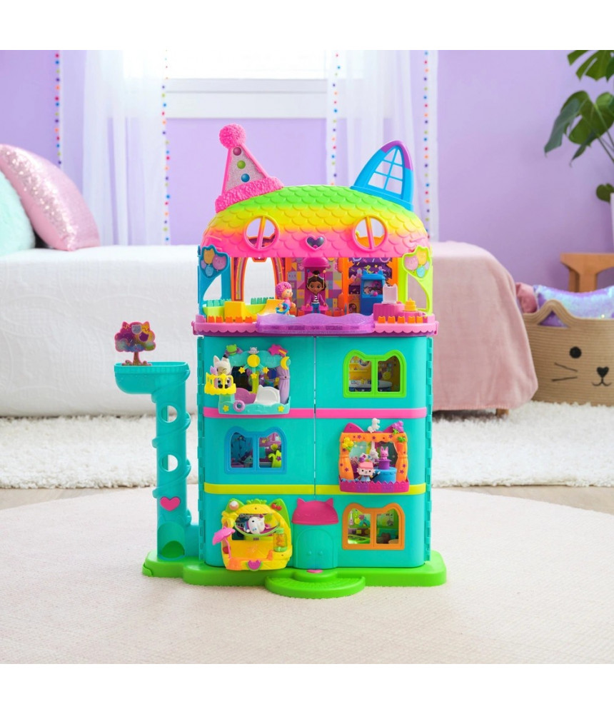 Vstúpte do sveta, kde každý kútik ukrýva prekvapenie! Veľký domček Gábikin čarovný domček (viac ako 60 cm vysoký) prináša deťom radosť a fantáziu priamo z filmového plátna. Sedem izieb plných detailov, lentikulárne oči a funkčný mačací výťah otvárajú dvere k nekonečným príbehom.