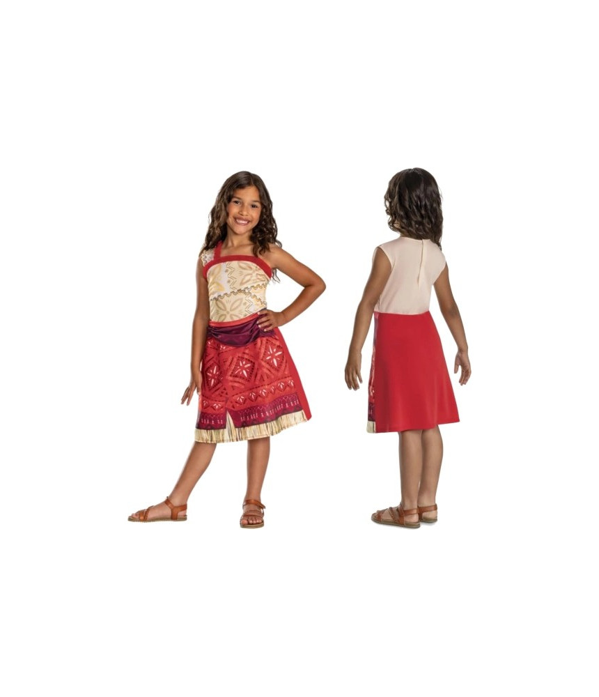 Tento kostým Disney Moana obsahuje predné tlačené šaty s vytlačeným náhrdelníkom, čiastočne elastickým pásom.