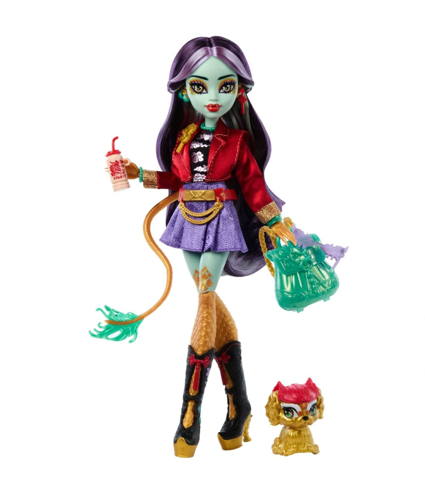 Ponorte sa do strašidelne štýlového sveta Monster High s bábikou Jinafire Long, ktorá je magickou dračou princeznou z východnej mytológie! Jinafire so svojimi úchvatnými detailmi a jedinečnými doplnkami skutočne vyniká z davu. Bábika má zlaté šupinaté nohy a ruky, ako aj zelenú pokožku, ktoré pripomínajú jej dračie dedičstvo, zatiaľ čo jej fialová hriva a červeno-žlté ozdoby jej dodávajú moderný, extravagantný vzhľad.